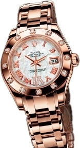 Округлые, гармоничные линии как высший символ женственности. Здесь часы Lady-Datejust Pearlmaster White Gold Masterpiece 12 Diamond Bezel 80315 mother of pearl diamond Roman IV dial представлены в исполнении из розового золота. Часы Lady-Datejust Pearlmaster примечательны своими гармоничными, округлыми линиями. Безель этой модели украшен 12 бриллиантами, блеск которых усиливается мягким сиянием розового золота. Хронометр - Сертификация COSC. Механизм с автоподзаводом, Caliber 2235 на 31 камне с запасом хода 42 часа. Циферблат - шоколадный с римскими цифрами из розового золота, с 11 бриллиантами на цифре 6. Окошко даты с лупой находится в положении 3 часов. Браслет - Pearlmaster из розовогоо золота 750 пробы с застежкой Crownclasp.