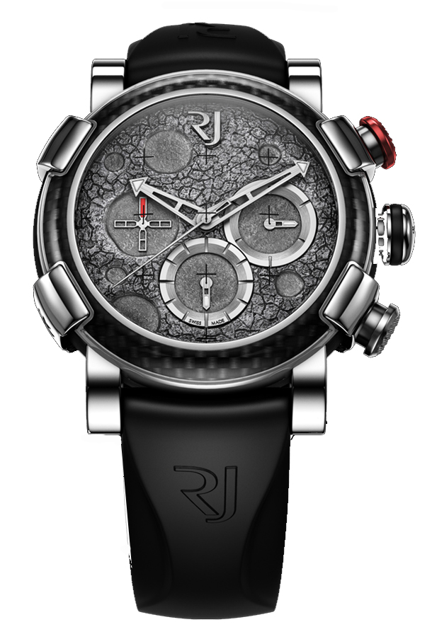 Механизм - автоматический, Калибр RJ001-C. Корпус - нержавеющая сталь, углеродное волокно, покрытие PVD. Циферблат - серый, минеральная структура, содержащая лунную пыль. Запас хода - 42 часа. Ремешок - каучук с вставкой из нержавеющей стали. Водонепроницаемость - 30 м.