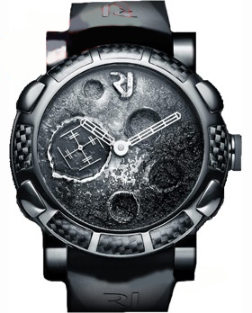 Механизм - автоматический, Калибр Jacquet C22RJ51. Корпус - нержавеющая сталь, углеродное волокно, покрытие PVD. Циферблат - серый, минеральная структура, содержащая лунную пыль. Запас хода - 42 часа. Ремешок - каучук с вставкой из нержавеющей стали, откидная застежкаа. Водонепроницаемость - 50 м.