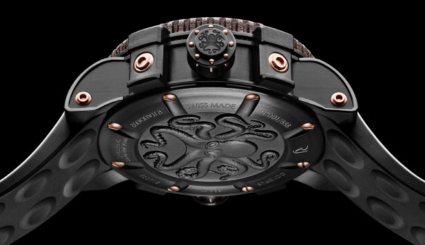 Механизм - автоматический, Калибр RJ002-A2. Корпус - нержавеющая сталь, покрытие PVD. Циферблат - черный с золотистым. Запас хода - 42 часа. Ремешок - каучук с вставкой из нержавеющей стали. Водонепроницаемость 270 м.