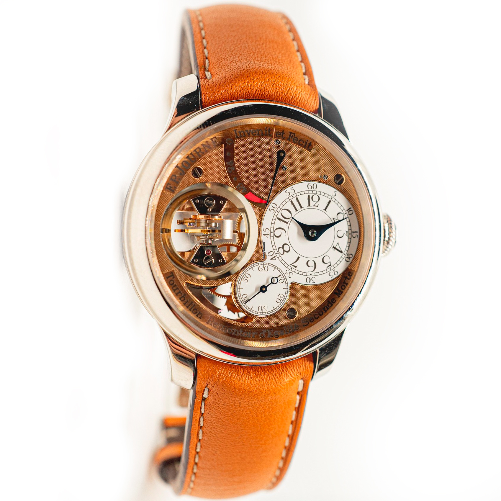 F.P.Journe Vertical Tourbillon — это оригинальные часы от бренда F.P. Journe референс TN PT 42 A RG созданные с учетом лучших традиций часового искусства, у которых Тип калибра механика с ручным подзаводом, Диаметр, мм 42, Материал корпуса платина, будет идеальным выбором для тех, кто ценит точность, стиль и качество, подтвержденное временем, станет практичным инструментом и важным элементом вашего имиджа. F.P.Journe Vertical Tourbillon имеют Браслет кожа, представлены в интернет-магазине Luxgroups по лучшей цене с возможностью купить в Украине. Квалифицированная консультация по модели часов F.P.Journe Vertical Tourbillon TN PT 42 A RG.