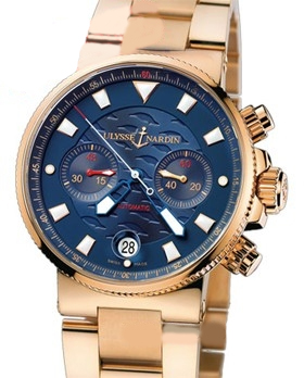 Ulysse Nardin Blue Seal Limited Edition 999 — это оригинальные часы от бренда Ulysse Nardin Maxi Marine Chronograph референс 356-68LE-8 созданные с учетом лучших традиций часового искусства, у которых Тип калибра механика с автоподзаводом, Диаметр, мм 41, Материал корпуса розовое золото, будет идеальным выбором для тех, кто ценит точность, стиль и качество, подтвержденное временем, станет практичным инструментом и важным элементом вашего имиджа.Ulysse Nardin Blue Seal Limited Edition 999 имеют Браслет Браслет золотой, представлены в интернет-магазине Luxgroups по лучшей цене с возможностью купить в Украине. Квалифицированная консультация по модели часов Ulysse Nardin Blue Seal Limited Edition 999 356-68LE-8.