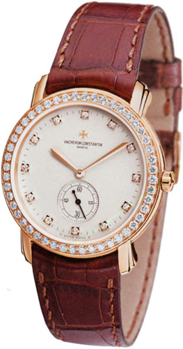 Классические часы с изысканным в своей простоте белым циферблатом, часовые метки которого украшены бриллиантами. Кроме того, на циферблате находится дополнительный секундный циферблат.