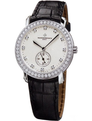 Классические часы с изысканным в своей простоте белым циферблатом, часовые метки которого украшены бриллиантами. Кроме того, на циферблате находится дополнительный секундный циферблат.