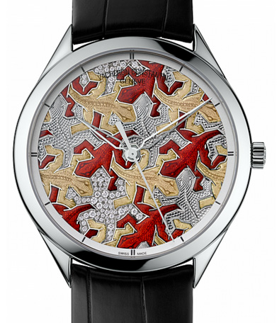 На циферблате этой модели из коллекции «Métiers d’Art – Les Univers Infinis» в ярко- красных и оранжевых тонах изображена стая ящериц. Мотив этой композиции, созданной с помощью гильоширования и эмалевой росписи клуазон, разработана в качестве дани уважения великому голландскому художнику и гравировщику Морису Корнелиусу Эшеру. Только этот мастер мог создавать шедевры созданные при помощи сочетания техник гравюры, инкрустации, эмалирования, гильоширования и маркетри из золота и перламутра.