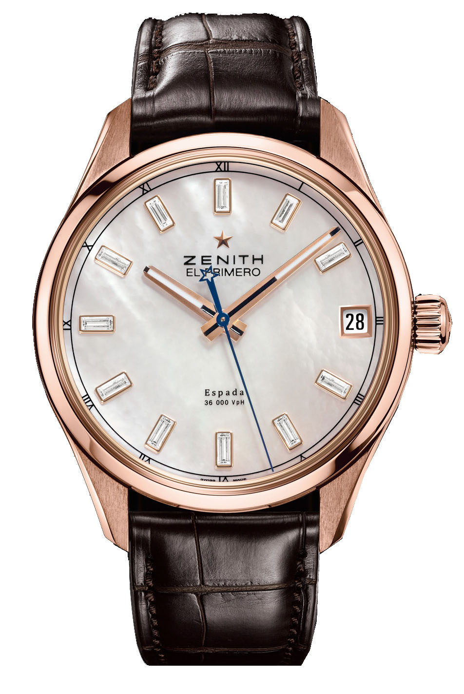 Zenith El primero Espada — это оригинальные часы от бренда Zenith El Primero референс 18.2170.4650/81.C713 созданные с учетом лучших традиций часового искусства, у которых Тип калибра механика с автоподзаводом, Диаметр, мм 40, Материал корпуса розовое золото, будет идеальным выбором для тех, кто ценит точность, стиль и качество, подтвержденное временем, станет практичным инструментом и важным элементом вашего имиджа.Zenith El primero Espada имеют Браслет Ремешок из кожи крокодила, представлены в интернет-магазине Luxgroups по лучшей цене с возможностью купить в Украине. Квалифицированная консультация по модели часов Zenith El primero Espada 18.2170.4650/81.C713.